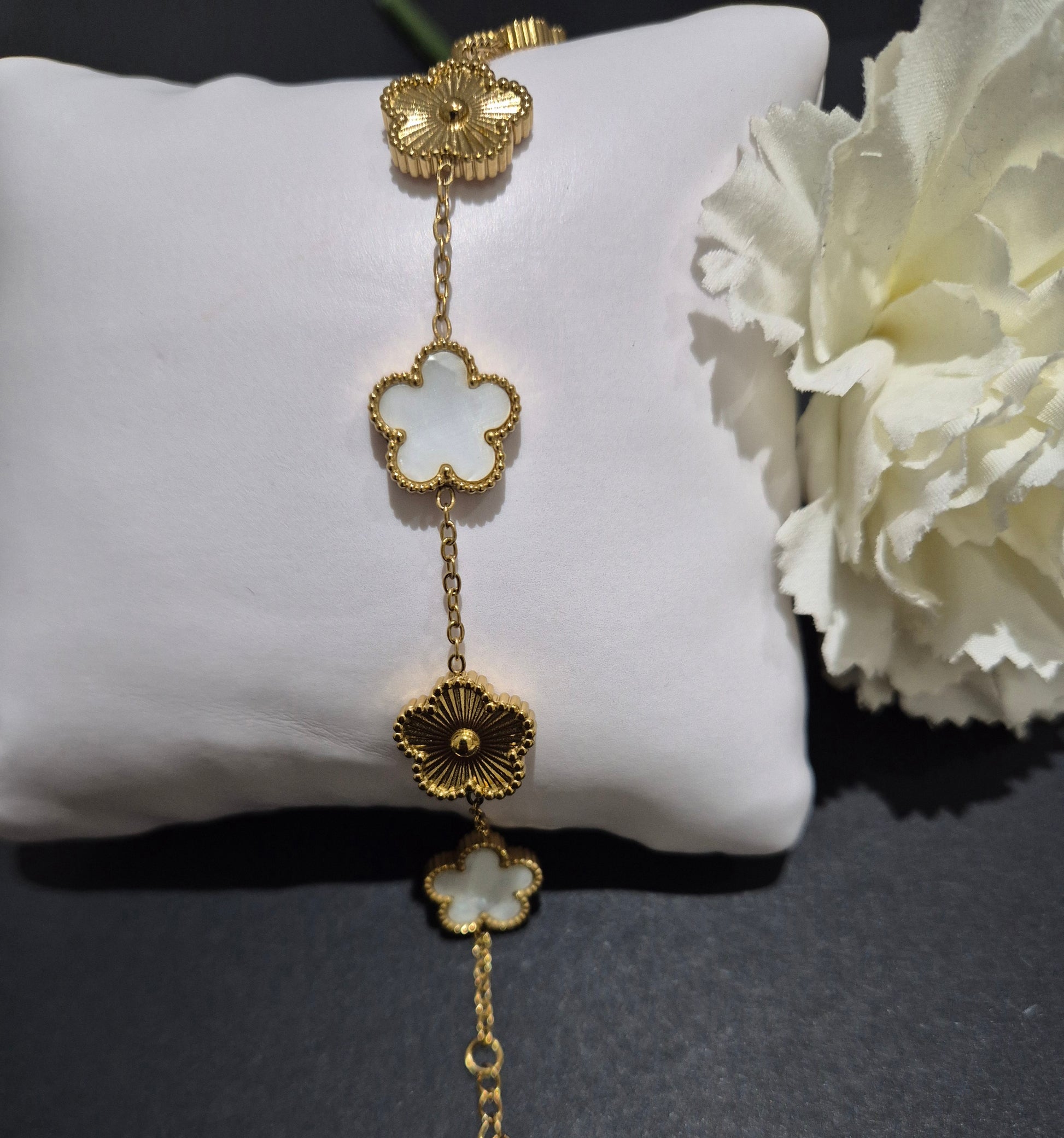Add a touch of charm to your style with this playful five-leaf black clover bracelet.